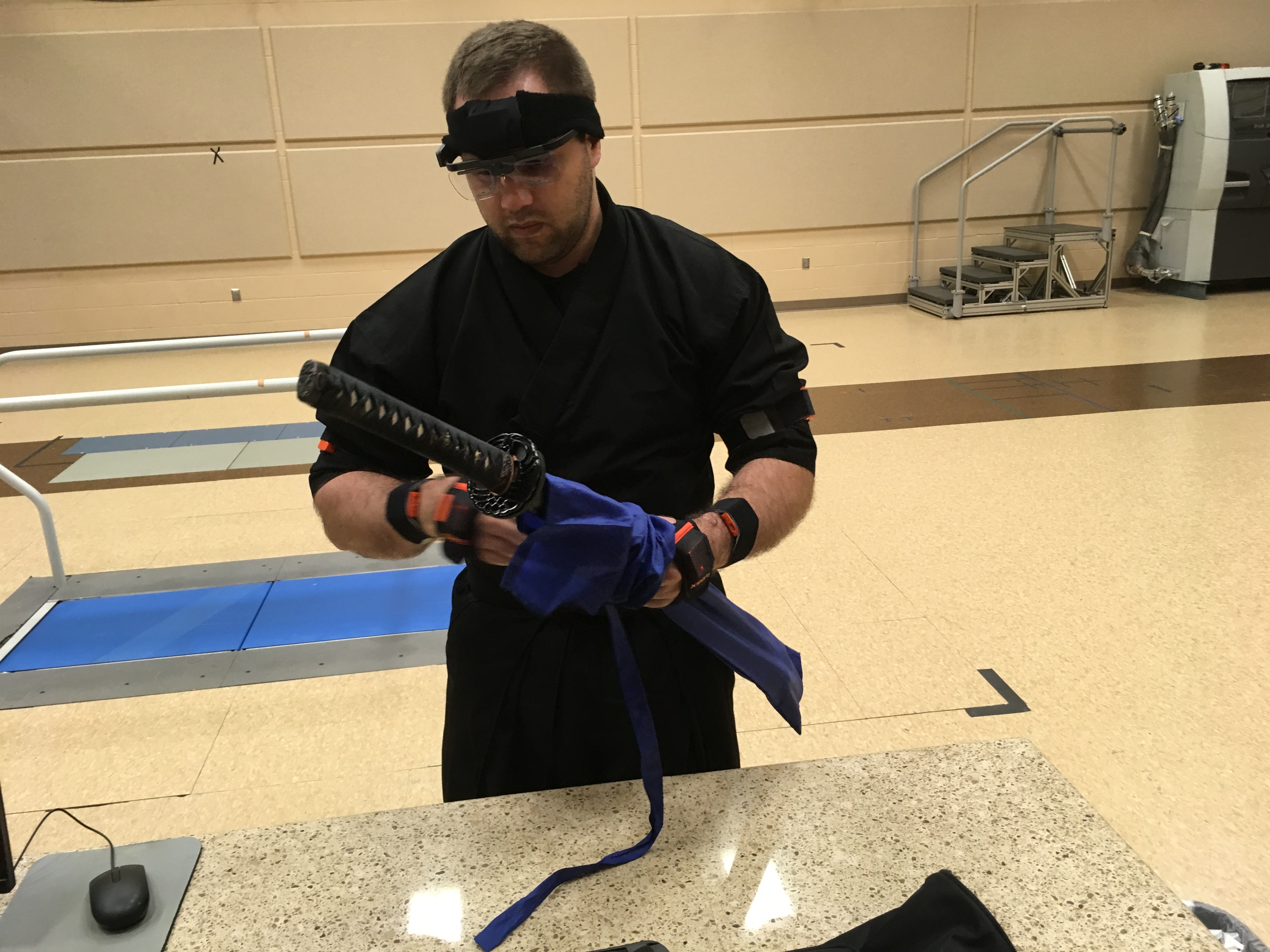 Iaido is a style of Japanese fencing that has roots in the sword styles of Japanese samurai. The traditional dress is integral to its performance. So devices like the MVN Awinda hardware allow better capture of the moments compared to marker-based motion capture. Like ballet, martial arts are very particular in their movements. The joint angles and movement patterns throughout the forms are very specific and linked to applications. In Iaido even the practitioners gaze is important; which is visible in the recording. Once recorded movements can be analyzed and used to coach the practitioner. A stance might have been too short, the angle of the sword may have resulted in a bad cut. These aspects can be quantified and improvement can be measured.
